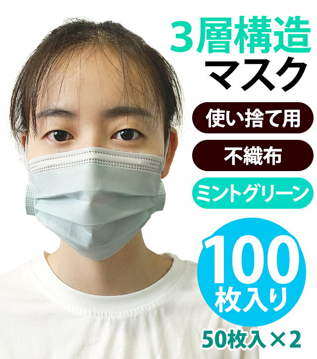 【即日発送 即納】マスク GPT 使い捨てマスク8 不織布【 100枚 】薄い 緑色 ミントグリーン 3層構造 不織布マスク ますく 送料無料 箱 50枚入×2 在庫あり カラー おしゃれ 大人 (gu1a761)【セット】
