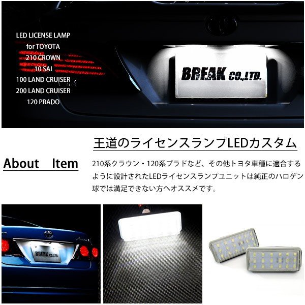 商品説明 トヨタ用 車種別設計 ライセンスランプユニット 2個セット 高輝度、高品質の台湾製LEDチップを18基内蔵!6500Kの純白色!仕様(スペック)LED:片側18LED(左右合計36LED)色温度:6500K(白色)【セット内容】2個セット 純正互換品番 :81270-60332 適合車種10系 SAI AZK10 前期(H21.11〜H25.8)210系 クラウン AWS21# / GRS21# / GWS21# ハイブリッド対応100系 ランドクルーザー UZJ100 / HDJ101 ※背面タイヤ不可200系 ランドクルーザー UZJ20# / URJ20#120系 プラド GRJ12# / KDJ12# / ZJ12# / TRJ12# / VZJ12# ※背面タイヤ付き車不可 配送について 本州/四国/九州_900円北海道_900円沖縄_2420円※離島は別途追加料金がかかります。